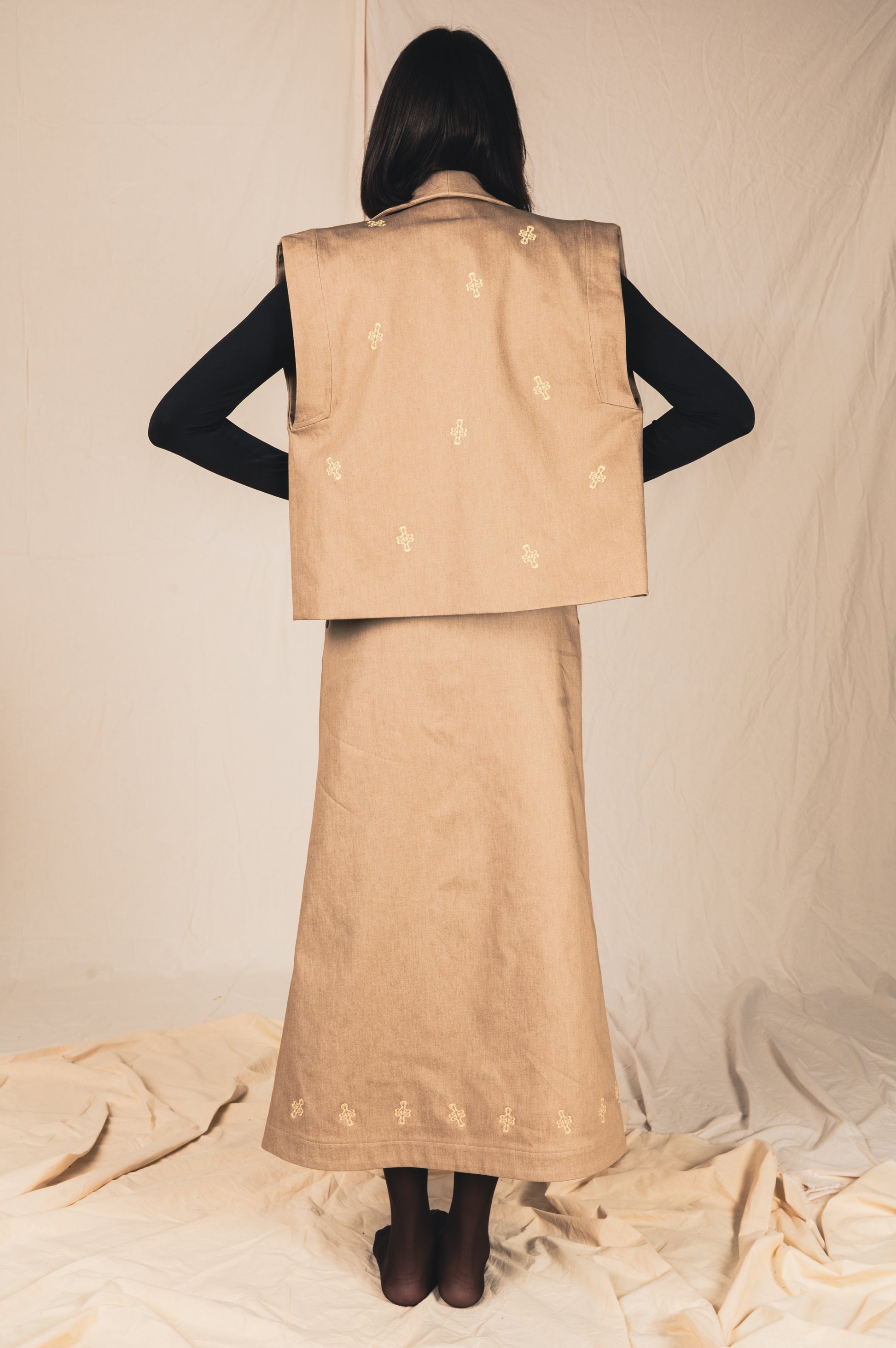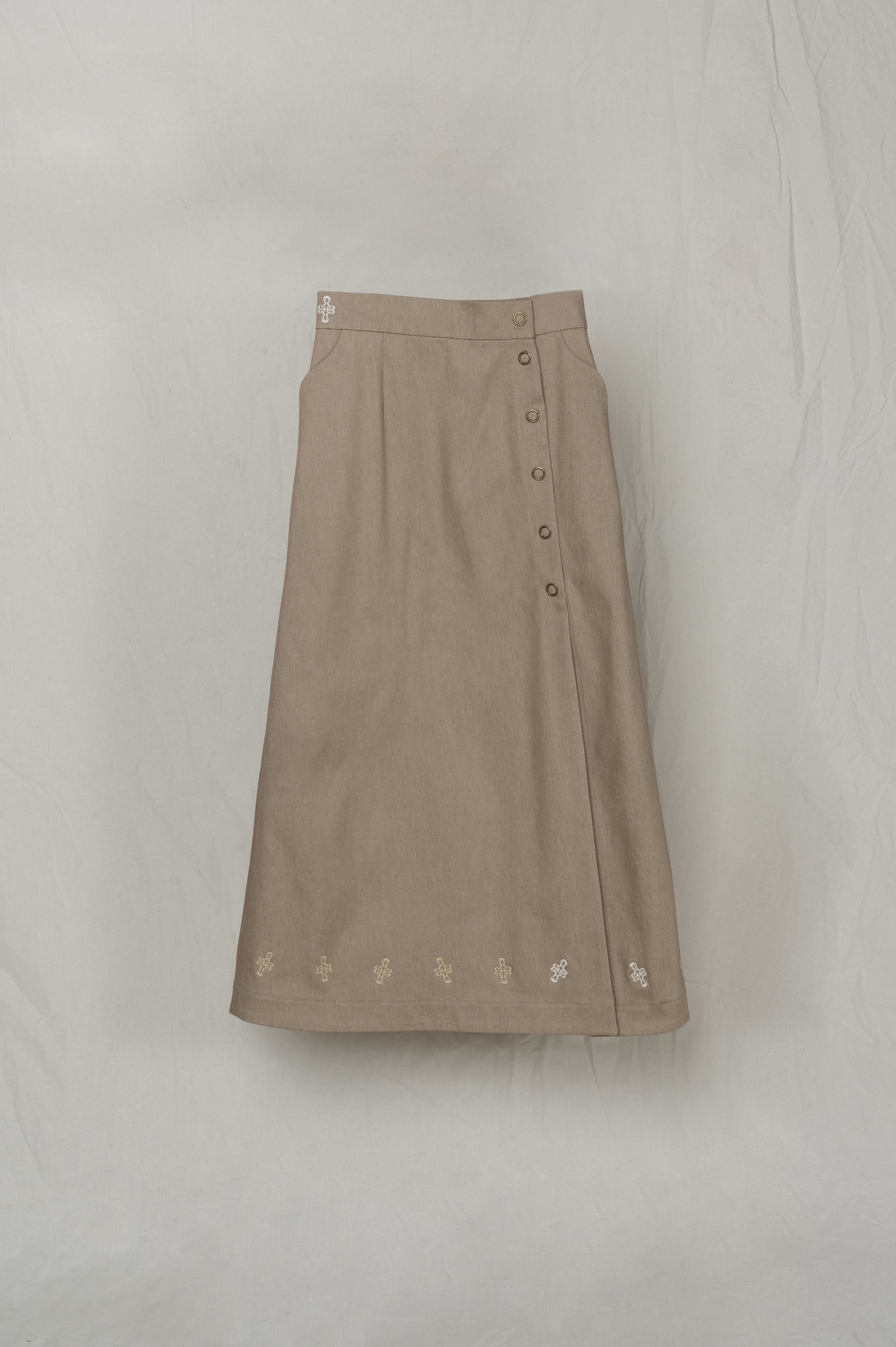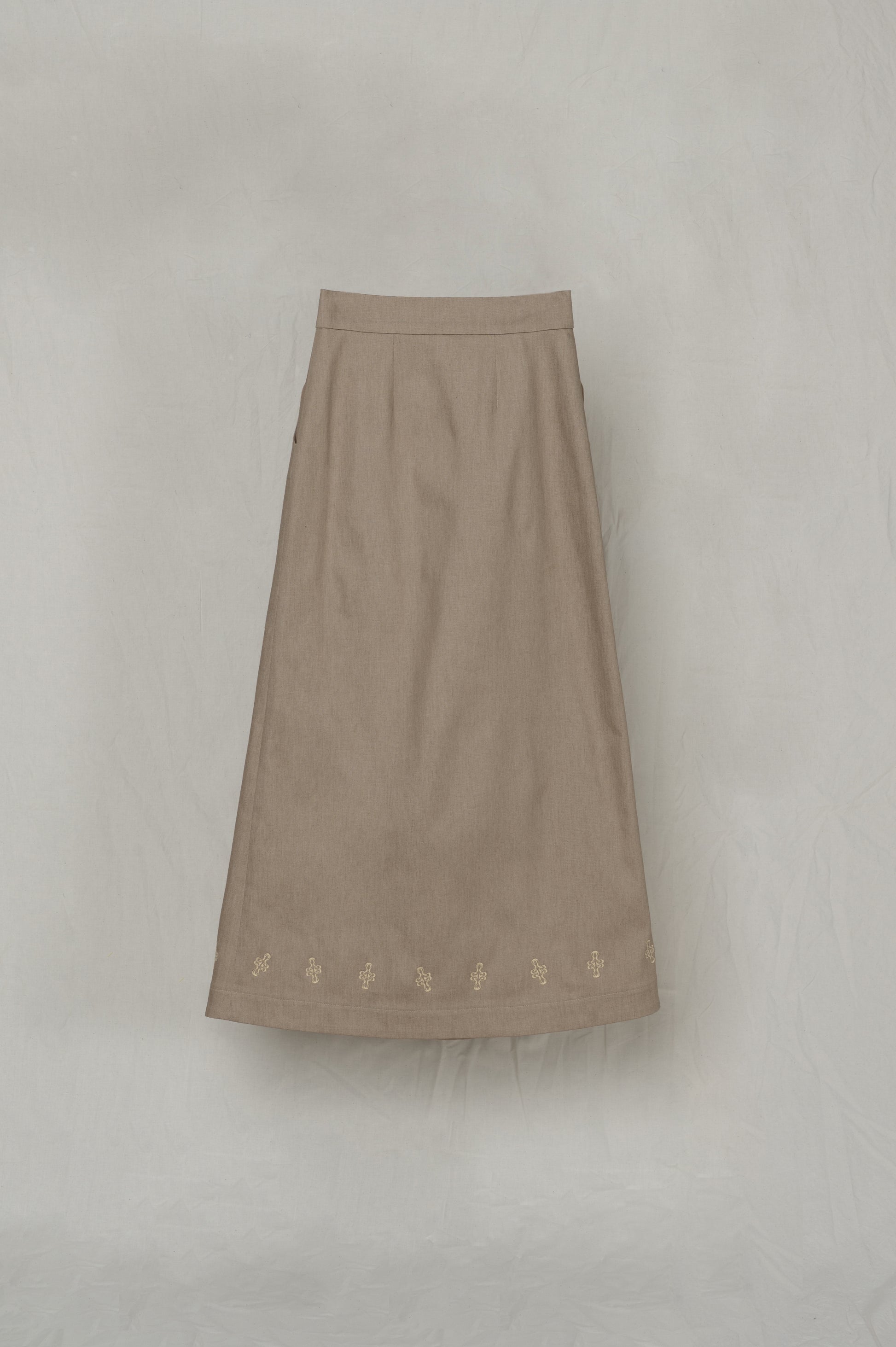 -Broderies linéaires le long du bas de jupe