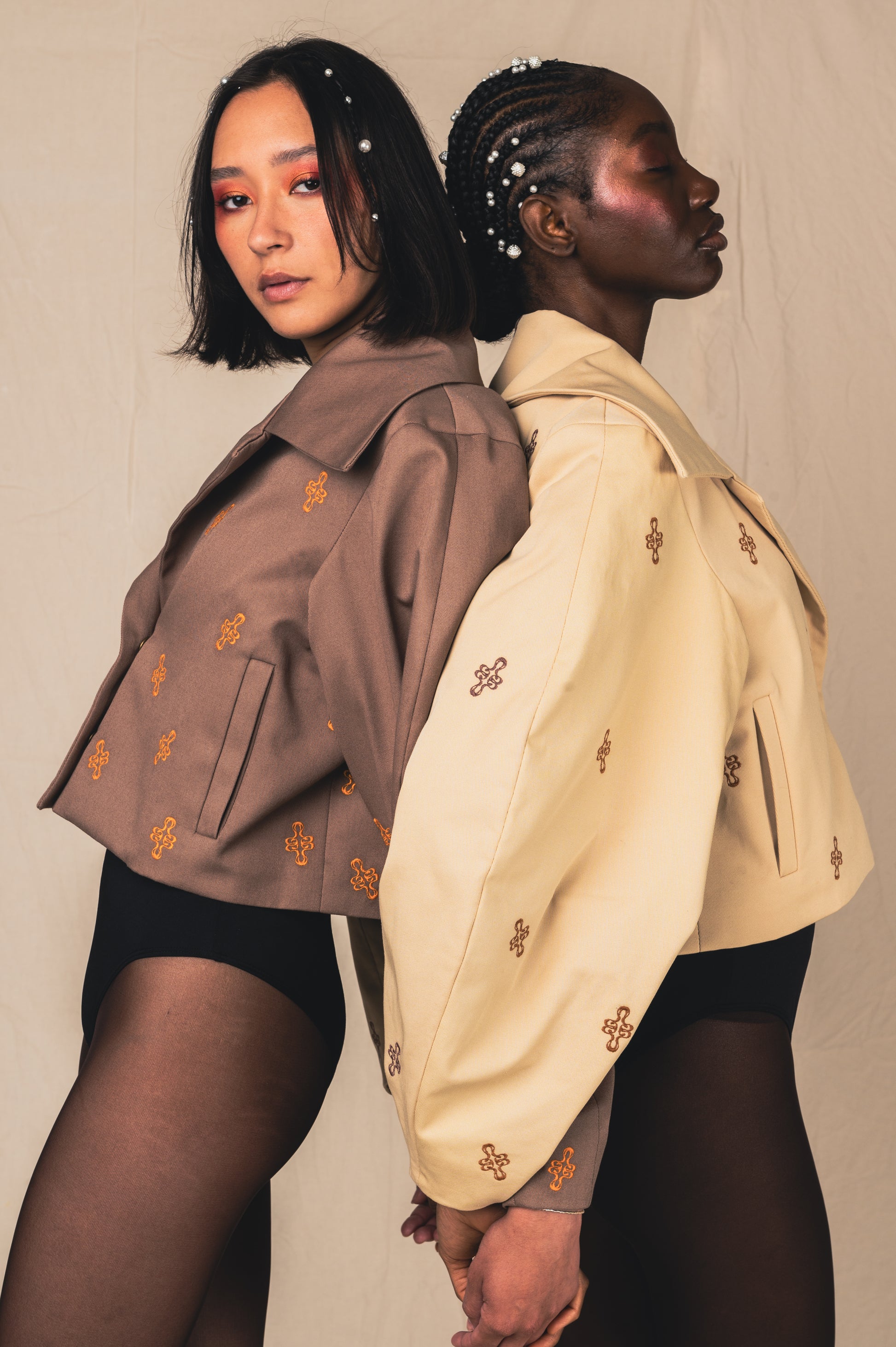 -Broderies devant et dos, de couleurs différentes entre le devant et le dos